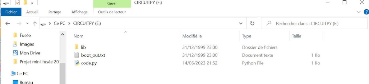 Le fichier code.py est executé à chaque mise sous tension de la carte ou à chaque appui sur le bouton reset. Le programme en Circuit Python doit donc obligatoirement avoir ce nom lorsque vous le flashez sur la carte.