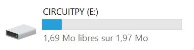Une fois le firmware installé sur la carte, vous devez voir apparaître cette dernière comme un lecteur USB sous le nom "CIRCUITPY" :
